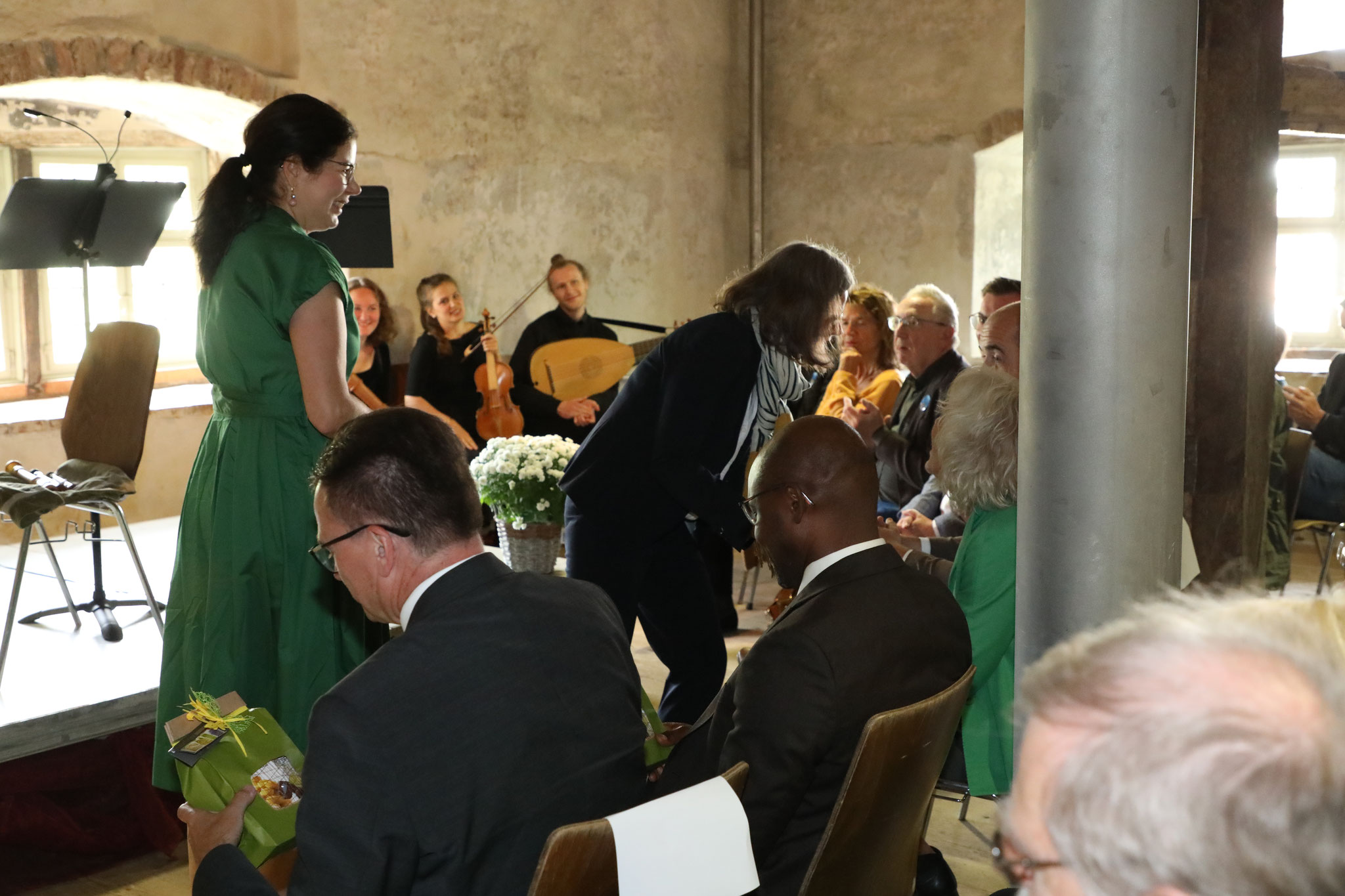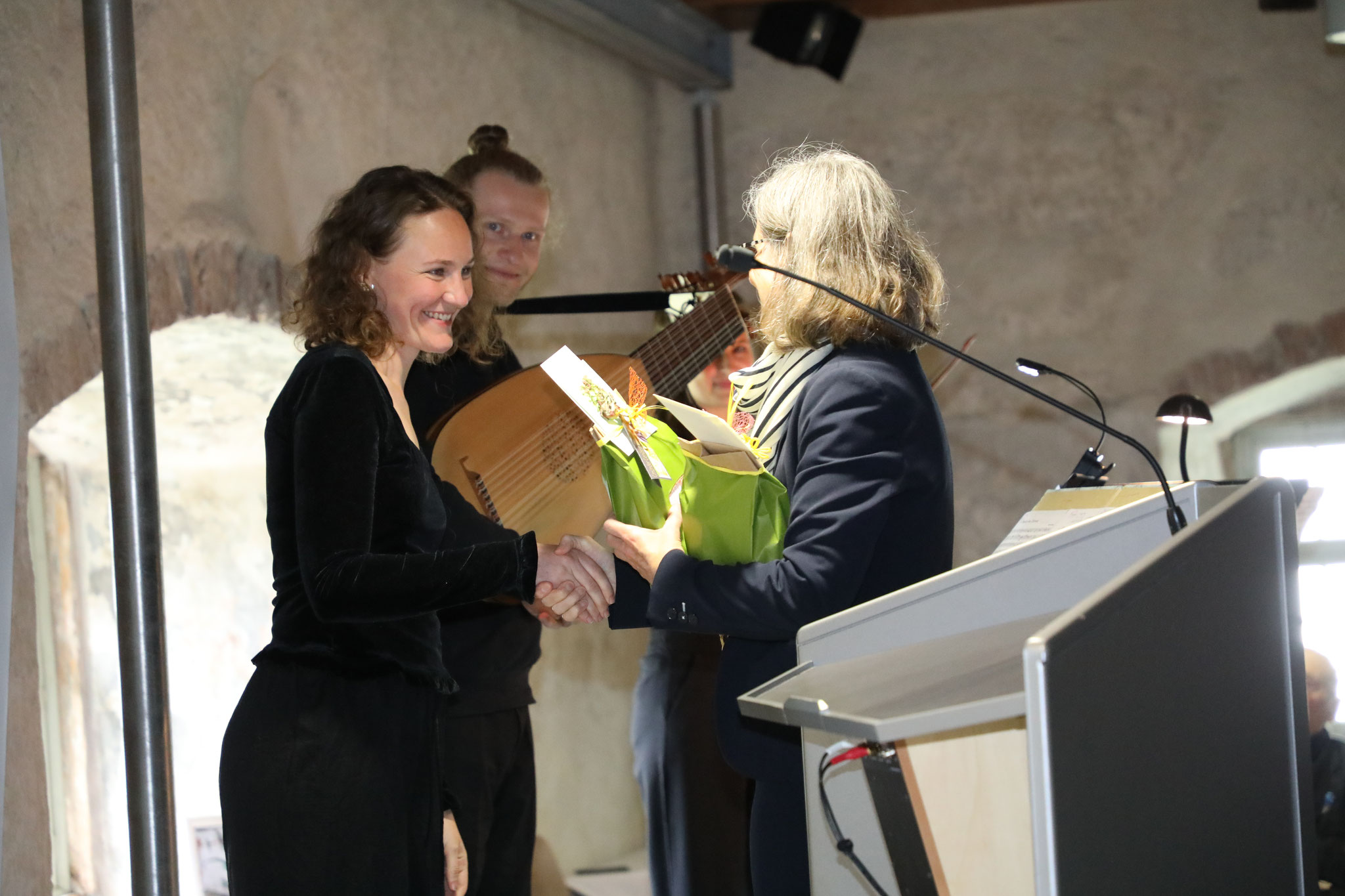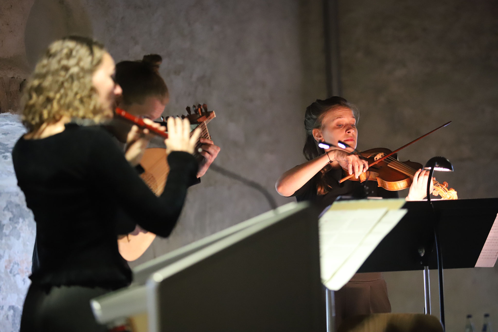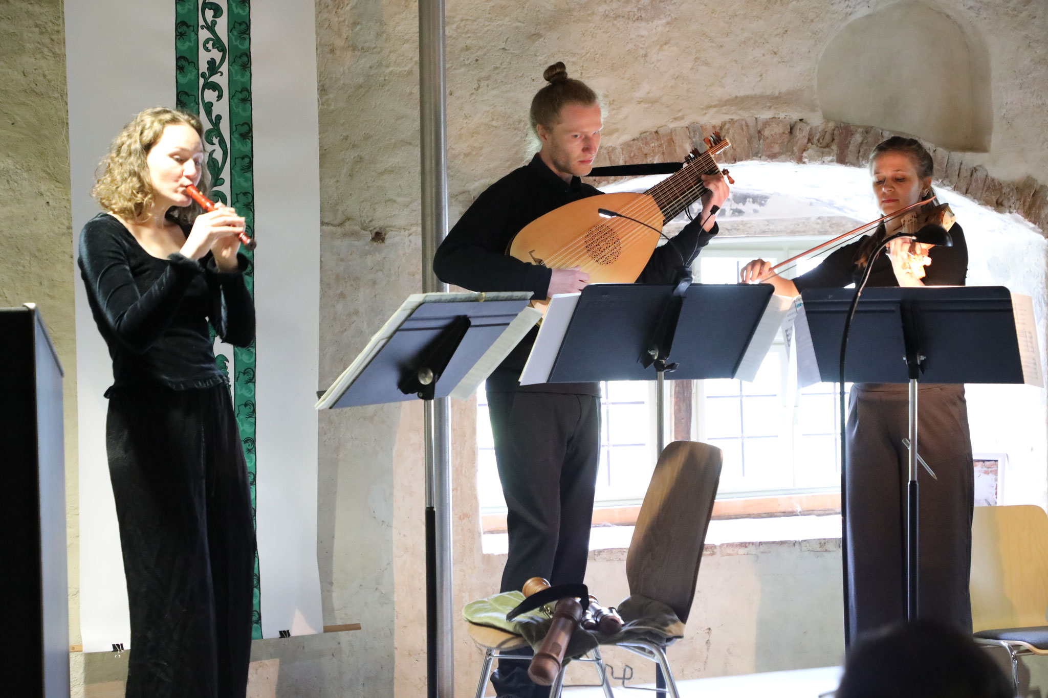Im stimmungsvoll geschmückten Erdgeschoss ließen Carolin Daub (Blockflöte), Felicia Graf (Violine) und Emanuel Trautwein (Laute) mit Musik aus der Renaissance die Besucherinnen und Besucher in die Entstehungszeit des Schlosses eintauchen.